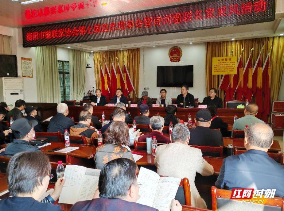 活动现场。红网时刻新闻11月16日讯(记者 谭如茵)11月15日,位于衡阳县杉桥镇的伊山文旅景区迎来了70余位衡阳市楹联和诗词名家现场采风。衡阳县政协原副主席凌奉云代表县委县政府在介绍伊山千年文脉和景区项目建设的同时,就挖掘伊山人文历史、筑牢伊山文化底座作了重点说明和安排。“明月似闻三弄笛,白云长对六朝山。”湖湘文化大家、晚清鸿儒王闿运的这副对联,再现了伊山的魏晋风骨。在伊山境内南岳七十二峰之岣嵝峰余脉云锦峰下,是东晋名将、淝水之战功臣桓伊幼时读书习武之地聚宝盆,也是他创作的中国古代十大名曲之《梅花三弄》诞生地。据清道光年间相关史料记载:“因桓伊先生读书于此遂得名焉”。为做好旅发大会后半篇文章聚宝盆,衡阳县委县政府以项目为抓手聚宝盆,整合县域文旅资源聚宝盆,大力招商引资,以文塑旅。匠心打造白石园花海等八大特色景点,兴建了桓伊纪念馆、养老公寓等新项目,进一步完善了景区功能。走进景区,由市联协、诗协组织创作的数十副镌刻敷金的楹联,悬挂在各主要景点的门柱上,增添了浓厚的文化氛围。据杉桥镇相关负责人介绍,对此次采风创作的优秀作品,将作为景区宣传推介资料结集出版,后续再开发诗联长廊等新的人文景点。在采风活动中,衡阳市楹联家协会召开了第七届四次理事会,市联协主席于坚代表第七届理事会作工作报告,全面系统地总结了过去一年协会在组织建设、人才培养、创作研究等方面取得的丰硕成果,对新的一年工作进行安排和部署,要求大家齐心协力,市县联动,推动楹联艺术在传承中创新,在创新中发展。市诗词学会会长张乐平主持了采风活动各项议程,鼓励大家潜心创作更多富有地方特色与时代精神的优秀作品,为衡阳“制造立市、文旅兴城”贡献更大的文艺力量。举报/反馈